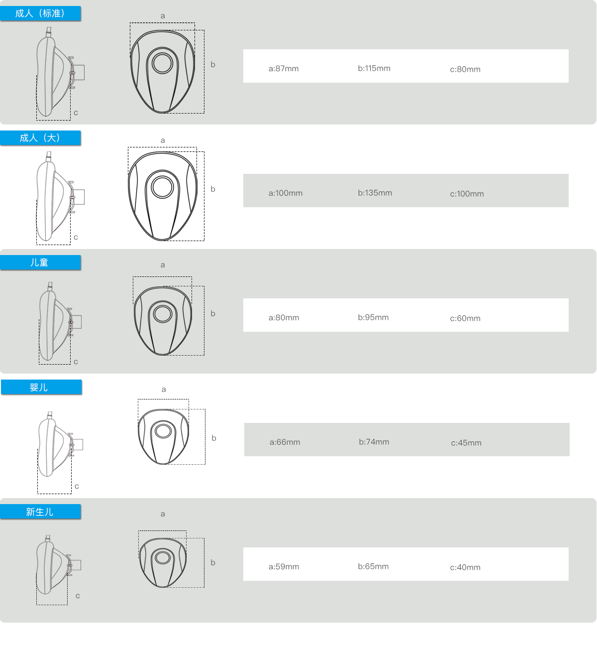 面罩氣囊柔軟,使用舒適。標準接頭與麻醉呼吸回路、麻醉呼吸機連接緊密。產(chǎn)品型號種類完整,適合成人、兒童、嬰兒、新生兒患者使用。